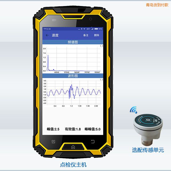 【工作模式】 智能點(diǎn)檢儀可以抄錄設(shè)備運(yùn)行時(shí)過(guò)程控制儀表顯示的工藝參數(shù)(如:電壓、電流、溫度壓力、流量等)和觀察量(如漏油、異響、部件松動(dòng)、潤(rùn)滑狀況等),可以配合測(cè)振傳感單元(即小蘑菇)進(jìn)行溫度、振動(dòng)(加速度、速度、位移、包絡(luò)及FFT譜)的測(cè)量。